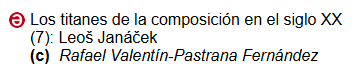 Excelente trabajo, sobre todo la recopilación pero la agudeza con la que retrata a Janacek, sobre todo el redescubrimiento de su obra para muchos que somos latino-americanos, y su típica formar de hacer hablar a la orquesta casi con voces humanas en una genialidad que solo se ha dado en Leos Janacek.