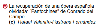 Valoración que debería empezar a reconsiderarse, tras la feliz reposición de Fantochines, como inicio de una necesaria y justa etapa de recuperación de otras muchas obras merecedoras de ser conocidas del prolífico catálogo de Conrado del Campo.