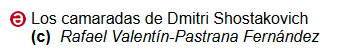 – Rafael Valentín-Pastrana: Los campeonísimos de la música de Dmitri Shostakovich. http://www.eltema8.com, 2014.