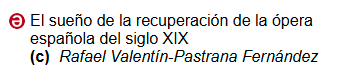 – Francisco Parralejo: El despertar de un sueño centenario. Teatro de La Zarzuela. Madrid, 2019.