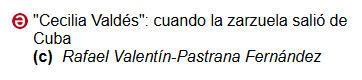 – Enrique Mejías: «Soy mestiza y no lo soy»: Idas y vueltas de la zarzuela en Cuba. Teatro de La Zarzuela, 2020.