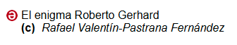 – Rafael Valentín-Pastrana: Los titanes de la composición musical en el siglo XX (3): Roberto Gerhard. http://www.eltema8.com, 2012.