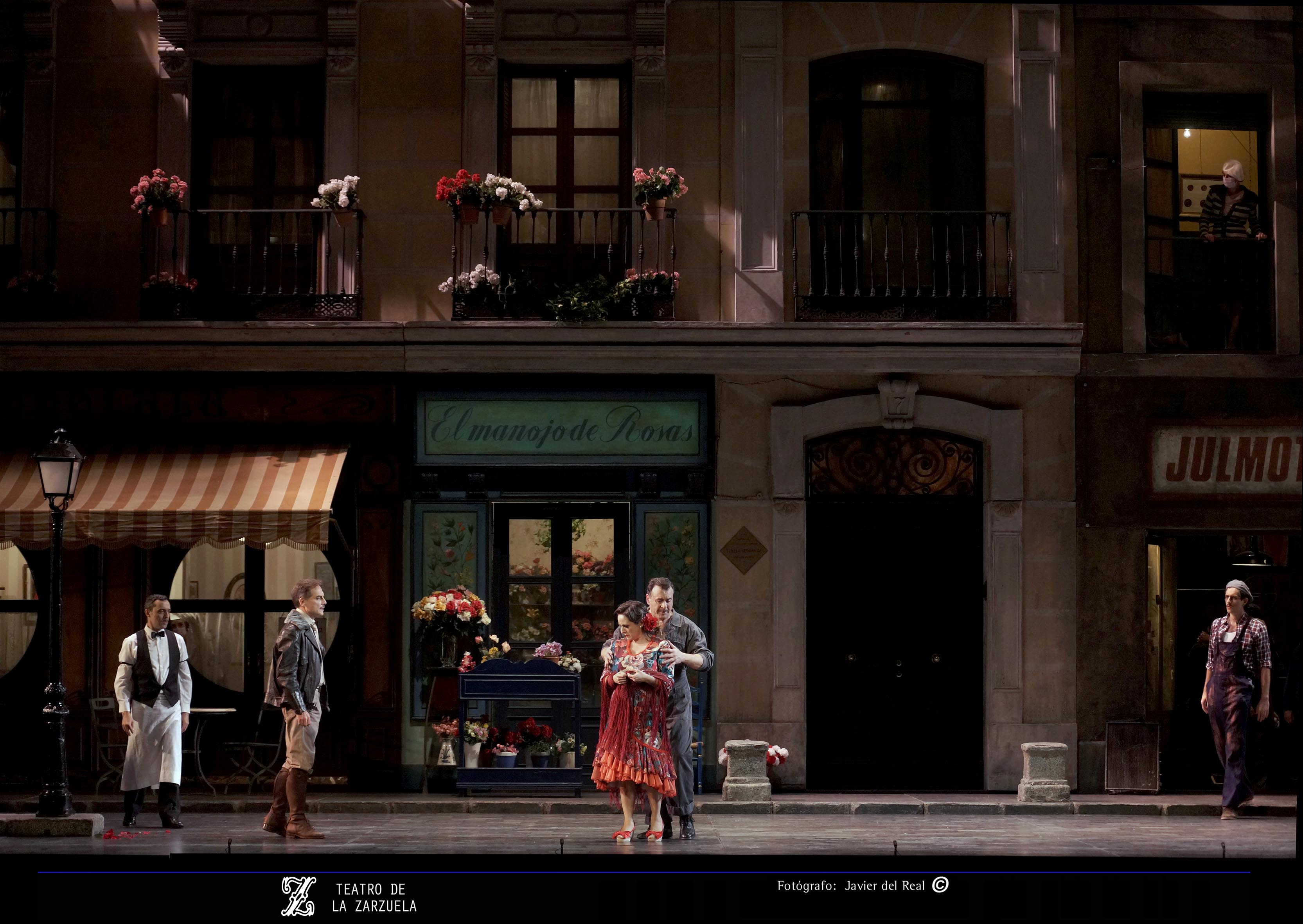 Así como Doña Francisquita (1923) de Amadeo Vives es el gran éxito de la zarzuela en los años veinte, La del manojo de rosas (1934) domina la década de los treinta y con ella Pablo Sorozábal (1897-1988) entronca ya desde el mismo título (entresacado de las estrofas del célebre dúo entre Maripepa y Felipe de La Revoltosa -1897- de Ruperto Chapí: «La de los claveles dobles / la del manojo de rosas / la de la falda de céfiro / y el pañuelo de crespón») con lo mejor de la tradición de la zarzuela castiza. El equivalente a aquel fragmento memorable es otro dúo no menos famoso entre Ascensión y Joaquín: «Hace tiempo que vengo al taller y no sé a qué vengo» que, desde su estreno en el Teatro Fuencarral de Madrid (al poco tiempo convertido en cine) un martes 13 de noviembre de 1934, pasó a ser uno de los momentos cumbres del género lírico español (quién lo iba a decir empezando con una referencia a un sector con tan poco glamour como el de los mecánicos…), tarareado por el público gracias a su ritmo irresistible de pasodoble y recordado por sus inspirados diálogos. La producción que nos ocupa es la quinta reposición de la puesta en escena que se estrenó en 1990, justo hace treinta años, con dirección escénica de Emilio Sagi (sobrino del célebre barítono Luis Sagi Vela, que participó en el estreno de La del manojo de rosas) y que constituye uno de los mayores éxitos del Teatro de La Zarzuela, programada desde entonces a lo largo y ancho de España e incluso exportada a capitales europeas como París y Roma.