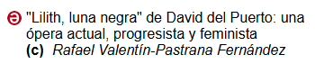 – David del Puerto: La música de «Lilith, luna negra». Fundación Juan March. Madrid, 2021.