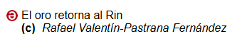 – Rafael Valentín-Pastrana: ¡Maldito anillo! http://www.eltema8.com, 2019.