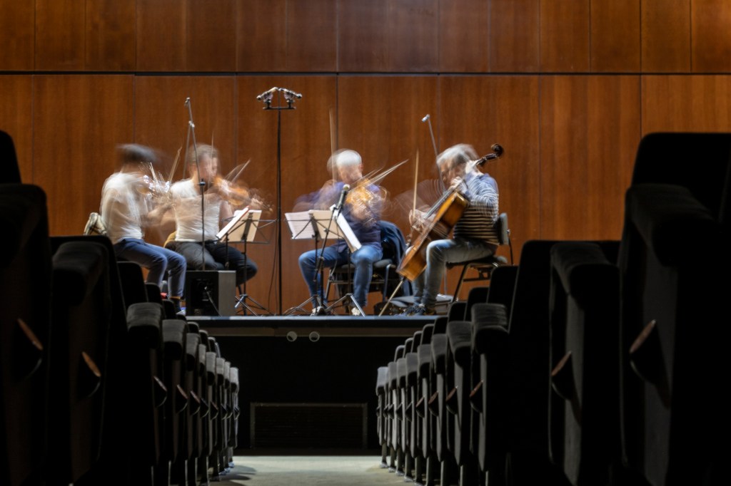 Nota: Las imágenes incluidas en este post del ensayo/concierto a cargo del Cuarteto Diotima de los cuartetos de cuerda de Conrado del Campo son © Fundación Juan March / Dolores Iglesias. Madrid, 2022.