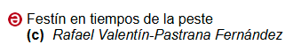 – José Luis Pérez de Arteaga: «La peste». Orquesta y Coro Nacionales de España. Instituto Nacional de las Artes Escénicas y de la Música. Ministerio de Cultura. Madrid, 1992.