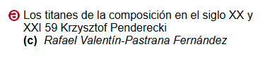 – Ismael G. Cabral: Del todo a la nada: Krzysztof Penderecki. Mundo Clásico. Cambre, 2020.
