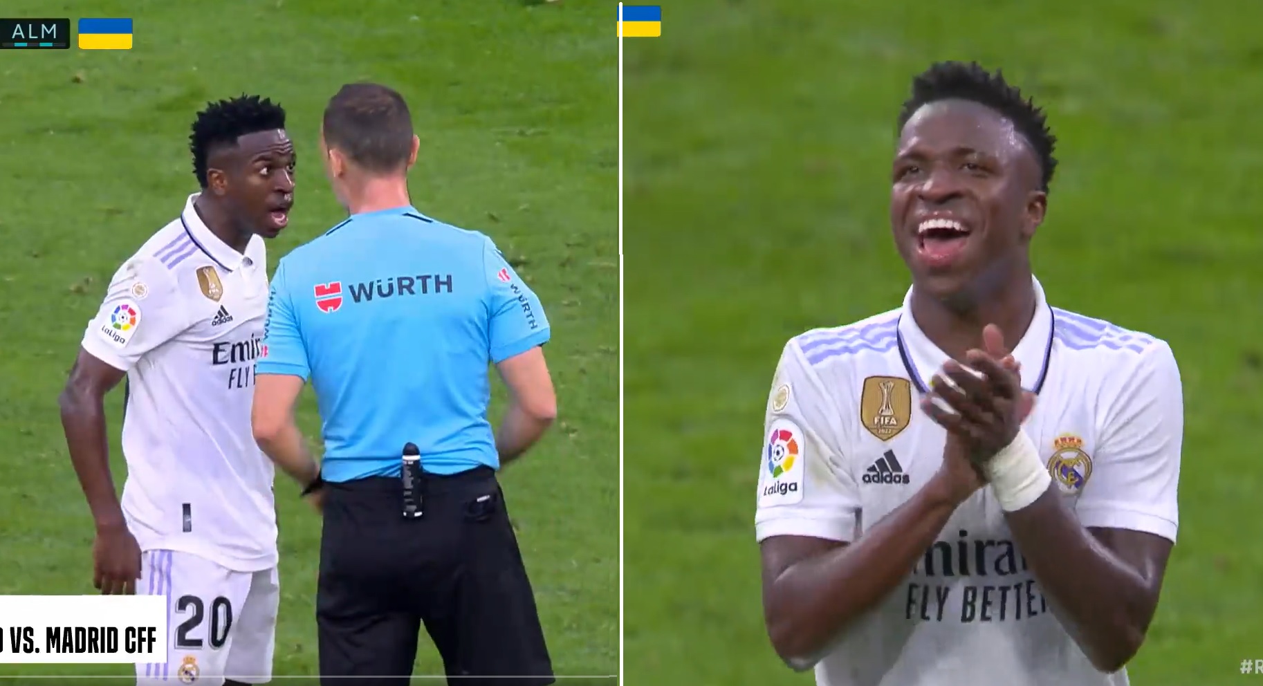 Y qué decir de las cargas; ahí el defensor madridista Dani Carvajal tiene barra libre con su patentada carga-obstrucción con cadera-hombro-brazo-mano, también conocida como «carvajalinha». A él, no. Pero a los demás jugadores que la practican, sobre todo si no visten de blanco, como por ejemplo Juanfran, se las sancionan sistemáticamente como falta. Aplaudir al árbitro también se juzga de manera diferente si el que aplaude es de un equipo o de otro. A Cristian Álvarez, portero del Zaragoza, le expulsaron con una doble amarilla el día siguiente que el árbitro del Real Madrid-Almería no considerara que Vinicius le estaba faltando al respeto cuando reaccionó con palmas (y con el gesto de que el árbitro estaba loco; el mismo que le supuso la expulsión a Joâo Félix y la sanción de dos partidos la temporada pasada) a una tarjeta amarilla con que Cuadra Fernández castigó una de sus protestas.