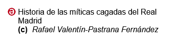 – Rafael Valentín-Pastrana: Final de Copa 2012-2013 Real Madrid vs Atlético de Madrid: fin del debate y contador a cero. www.eltema8.com, 2013.
