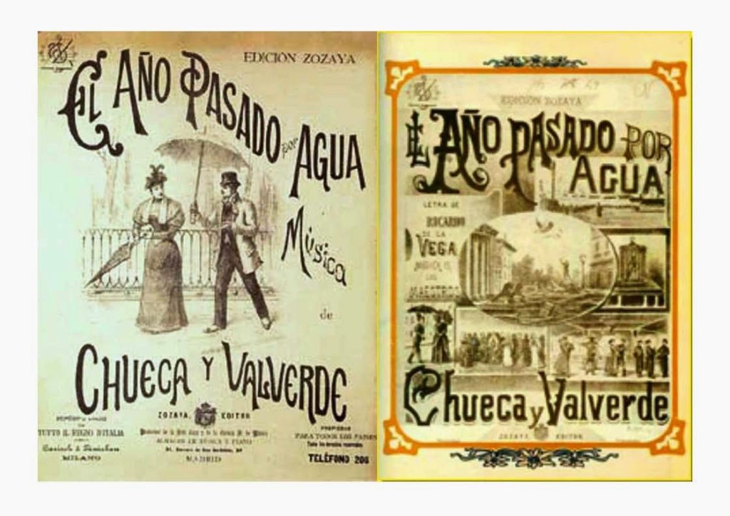 Los compositores Federico Chueca (1846-1908) y Joaquín Valverde (1846-1910), junto al libretista Ricardo de la Vega (1839-1910), habían sido los artífices de la irrupción del “Género Chico” en 1880 con La canción de la Lola, la primera obra escrita ex profeso para este españolísimo formato. Proveniente del “teatro por horas”, este peculiar género nació de una estrategia que unos avispados actores-empresarios (Luján, Riquelme y Vallés) habían ideado para optimizar la taquilla del Teatro del Recreo, dividiéndola entre cuatro funciones para que el público pudiera acudir a una, a dos, a tres o a todas dependiendo de su tiempo y economía («¡A real la pieza!» era el reclamo) en vez de pagar una entrada única de cuatro reales para asistir a una obra de duración más larga. El 1 de marzo de 1889, esta vez en el madrileño Teatro Apolo, Chueca, Valverde y De la Vega repiten la fórmula y estrenan, con enorme éxito, la revista en un acto y cuatro cuadros El año pasado por agua.