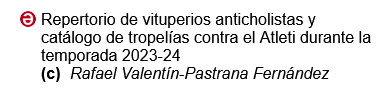 El curso recién finalizado ha dejado un amargo sabor de boca en la afición del Atlético de Madrid y algunas de las peores estadísticas (en Liga, 10 derrotas sufridas, 43 goles recibidos, 13 partidos seguidos encajando goles) desde que Simeone dirige al equipo. El no depositar, por tercer año consecutivo, ningún título en sus vitrinas ha provocado que el desencanto se extienda entre la afición colchonera. Un negro panorama se vislumbra en el horizonte si el Atleti no se conciencia de que, para competir los títulos a los clubes-estado (tanto internacionales como nacionales… que también en España los hay) tiene que remodelar en profundidad tanto el cuerpo técnico como la plantilla, comprando y pagando talento, calidad, músculo y juventud para reforzarla. Es necesario asumir la cruda realidad, hacer autocrítica reconociendo los errores y adoptar con prontitud las necesarias medidas para solucionarlos. Por muchos vituperios y tropelías que haya padecido de nuevo el Atlético de Madrid durante la temporada 2023-24.