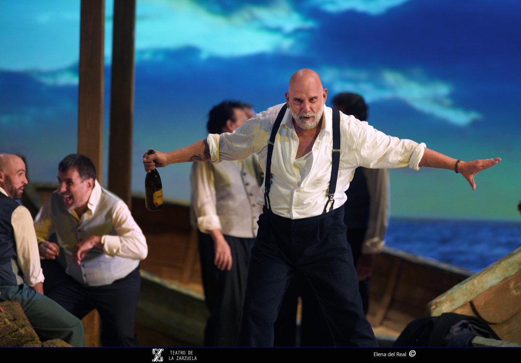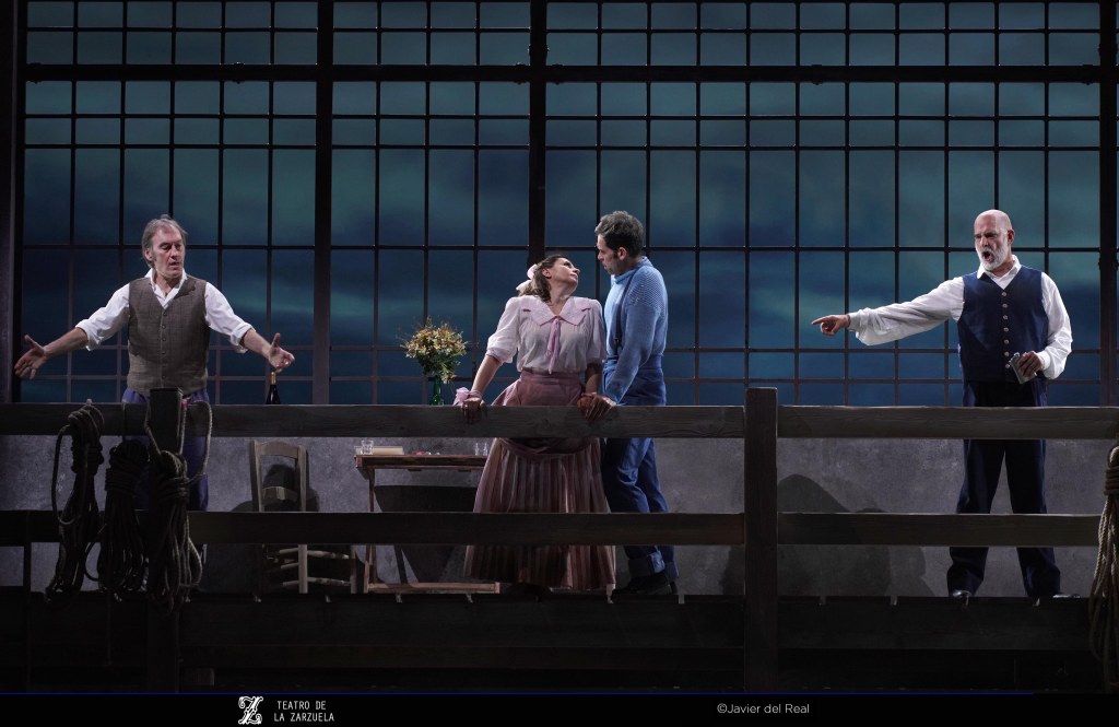 Al frente del segundo reparto, muy equilibrado, estuvo Marina Monzó como la huérfana Marina, que entusiasmó al público con su aria di agilità final; el marino Jorge, un papel para siempre vinculado a Alfredo Kraus, fue interpretado por Celso Albelo que, cuando la voz se le calienta, emplea la técnica krausista de la máscara y aprovecha su resonancia como pocos cantantes en la actualidad; Javier Castañeda en el papel de Pascual, el propietario del astillero, desplegó una poderosa voz de bajo-barítono y Pietro Spagnoli, como el resabiado y desengañado contramaestre Roque, sorprendió con una bellísima voz y una gran musicalidad, salvando con creces las dificultades que para un extranjero como él tienen la pronunciación del idioma español y el ritmo y la inflexión de sus frases y estrofas. Estrofas algunas de ellas que (sean de Camprodón o de Ramos Carrión) resultan, a los oídos de hoy, algo pomposas y anticuadas. No debió sentirse a gusto con ellas el ministro Ernest Urtasun, que acudió al estreno para arropar a la nueva directora del Teatro de La Zarzuela y que se encontró con todo un repertorio de las obsesiones a combatir en la hoja de ruta de la nueva izquierda: sumisión femenina, explotación laboral, alcoholismo, machismo, misoginia y hasta violación del secreto de las comunicaciones. Con lo ocupado que ya estaba combatiendo la tauromaquia, quién le mandaría ir a escuchar una zarzuela…