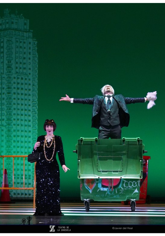 En cualquier caso la adaptación de Enrique Viana, dotado de un innato olfato teatral y experimentado conocedor de los gustos de la audiencia, funciona a la perfección gracias a una hábil y vertiginosa ilación de tramas (alguna en exceso larga, como el enrevesado monólogo del catetillo andaluz; otras muy emotivas, como la reflexión final de la vieja dama Gran Vía) y con la incorporación de prototipos de todos conocidos: la despiadada tiburona financiera, la propietaria pija y especuladora, la argentina atorrante, la instagramer de encefalograma plano… La producción cuenta con una escenografía de Carmen Castañón que saca partido a la icónica calle madrileña, estación de metro de Gran Vía incluida, un vistoso vestuario diseñado por Gabriela Salaberri, una eficaz iluminación de Alfonso Malanda y una sencilla pero apropiada coreografía (alejada de incomprensibles elucubraciones autorales, tan en boga últimamente y que exigen al espectador un manual de instrucciones para descifrar los pasos de baile) de Cristina Arias. En cuanto a los entusiastas y entregados intérpretes, que valen para todo (cantan, bailan y actúan entre continuos cambios de vestuario…), en esta ocasión destacaron especialmente Arantxa Cooper como Contaminación Lumínica (muy solvente en la endiablada sucesión de gorgoritos del Vals de la bujía, que proviene de la gacetilla cómico-lírica Luces y sombras, también de Chueca y Valverde, de 1882), el desparpajo de Adrián Quiñones como el Marinerito (con una notable soltura en el manejo del tambor militar) y Rosa María Abella como el Elíseo (con una estimable tesitura grave de contralto). Al frente de una solvente quincena de miembros de la Joven Orquesta Nacional de España estuvo Néstor Bayona, que también corre con la adaptación musical y la re-orquestación de la revista.