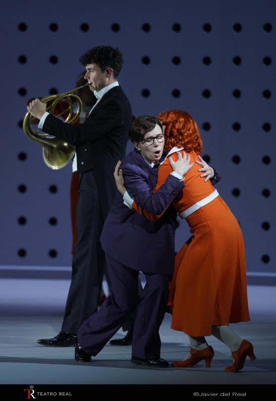 El director de escena Claus Guth (que ya había diseñado recientemente dos producciones mozartianas para el Real: Don Giovanni y Las bodas de Fígaro) traslada la acción de la ópera al mundo de la exitosa serie norteamericana Succession. Ahora los cuatro caprichosos y consentidos hijos de Logan Roy (una especie de Rey Lear, dueño de un imperio audiovisual y progenitor de una familia que se detesta) han quedado reducidos a dos: se supone que Kendall Roy ha transmutado a Farnace (porque su personaje comparte con el actor los tics y vicios de aquel) y que Roman Roy (también adicto al polvo blanco; menos mal que ahora no le da, como al actor de la serie, por mandar selfies de sus partes íntimas…) es Sifare. Del otro hermano y de la otra hermana, nunca más se supo. Pero claro, como esta vez -afortunadamente- no se han modificado los textos originales, todo esto nos lo imaginamos a partir de las reflexiones de Claus Guth. En cualquier caso, esta segunda lectura resultará irrelevante para los espectadores que no hayan visto el serial de HBO ni lo piensen ver.