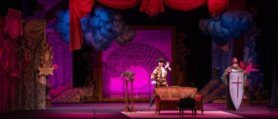 La dirección de escena y dramaturgia son de Alfonso Romero, que explica en el programa de mano la importancia que tiene en estas dos obras el travestismo teatral y de la sorprendente modernidad de los versos de Camprodón y Hurtado, escritos a mediados del siglo XIX: «En «Gato por liebre», tan solo la criada Cecilia es interpretada por una cantante cuyo sexo coincide con el de su personaje; en «El vizconde», el protagonista que da nombre a la obra es encarnado por una mujer». Romero propone integrar ambas obras en una línea argumental para darle unidad a las dos tramas: ahora el entremés es El vizconde, convertido en un capítulo de un serial televisivo que devoran con fruición los personajes de Gato por liebre, dos damas maduras de la alta sociedad, La baronesa y La condesa que se disputan el amor de Serafín, un joven que se deja querer, con fines interesados, pero que al final escapa con la doncella de servicio. Para ello el regista firma también unos diálogos adicionales que justifican el zapping de una a otra obra y que, afortunadamente, no chirrían con consignas extemporáneas. Y se recurre a unos spots publicitarios filmados en blanco y negro y al estilo de los años setenta que, a modo de cortinillas, amenizan la espera para llevar a cabo los cambios de escena. En líneas generales el planteamiento de Romero funciona y el espectáculo, de casi hora y media ininterrumpida, fluye con ritmo. En cuanto al resto de apartados técnicos, destacó la doble escenografía -antigua y pop- de Carolina González Sanz, mientras que el vestuario de Rosa García Andújar pecó de extravagante en exceso, con algún indescifrable guiño, como que Serafín luciera el característico atuendo que visten los miembros de la banda de La naranja mecánica.