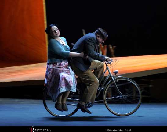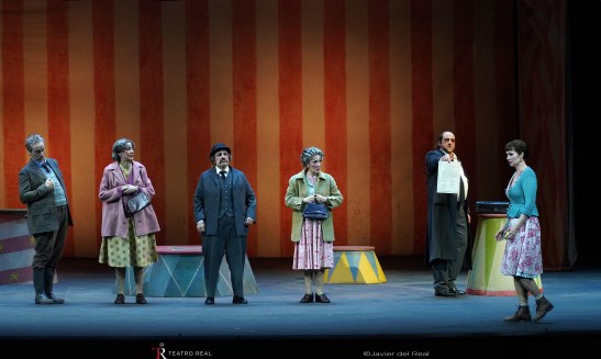 La novia vendida se presenta en coproducción entre el Teatro Real, la Opéra National de Lyon, la Oper Köln y el Théatre Royal de La Monnaie. Laurent Pelly, uno de los habituales del Real (Falstaff en 2019, Viva la mamma en 2021, Il turco in Italia en 2023 y Los maestros cantores de Nuremberg en 2024), se hace cargo de la ágil y dinámica dirección de escena, con no pocos aciertos: